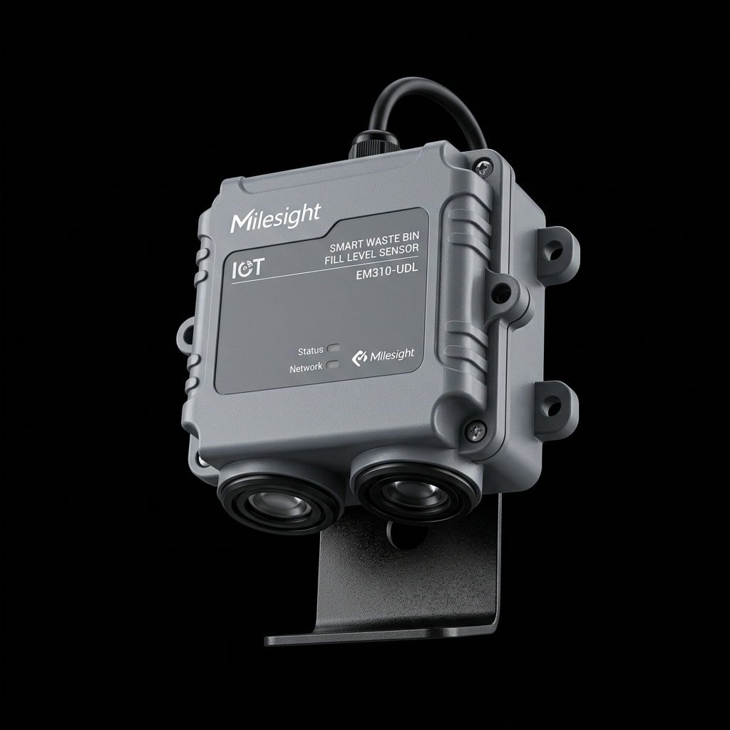 El sensor ultrasónico ToF EM400-TL avisa al personal de montacargas de limpieza de piso solo cuando los contenedores alcanzan el 80% de su capacidad. Se acabó el rondín ineficiente diario.